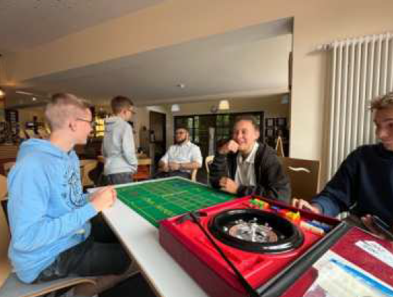 Wie funktioniert eine Börse? Was sind Aktien? Wieso sollte man Aktien kaufen? Warum sollte ich nicht vor dem Finanzamt weglaufen? Diese Fragen haben wir uns in unserem diesjährigen Börsenspiel gestellt. Ziel war es, möglichst viele Aktien oder Geld in der Spielhalle, im Casino oder durch Spezialaufträge zu bekommen. Aber Obacht: Die Werte der Aktien ändern sich dauernd; man muss immer auf dem Laufenden bleiben und sinnvoll handeln. Wer aber lieber in Naturalien investiert, konnte das bei den Arbeitern tun. Man konnte Ressourcen erspielen, die man dann in Häuser eintauschen konnte. Wer jetzt aber denkt, Aktien seien langweilig, war noch nicht an unserer Mini-Börse: Hier sind die Aktien Gummibärchen, Tempos, Lego oder Murmeln. Nachdem jeder seine Beutel voll Geld abgegeben hat, haben wir dann nach dem Abendessen eine große Runde Werwolf gespielt. Mit von der Partie waren die Freimaurer, Armor, der Kultführer, der Bürgermeister und natürlich auch die Werwölfe mit ihrem Jungen. In einem spannenden Spiel konnte das Dorf Fulda im Düsterwald aber dennoch die Gefahr der Werwölfe bannen.