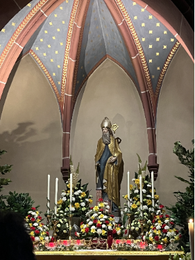 Nach dem feierlichen und sehr besonderen Gottesdienst entschmückten wir gemeinsam den Altarraum. Anschließend aßen wir zusammen im HdB zu Abend. Jeder hatte etwas für das fleischlose Buffet mitgebracht. Gut gestärkt starteten wir also in die Nachtanbetung. Kurz vor 23 Uhr lösten wir die Kolpingsfamilie ab, die bis dahin in der Kirche Nachtwache am Nikolausaltar gehalten hatte.